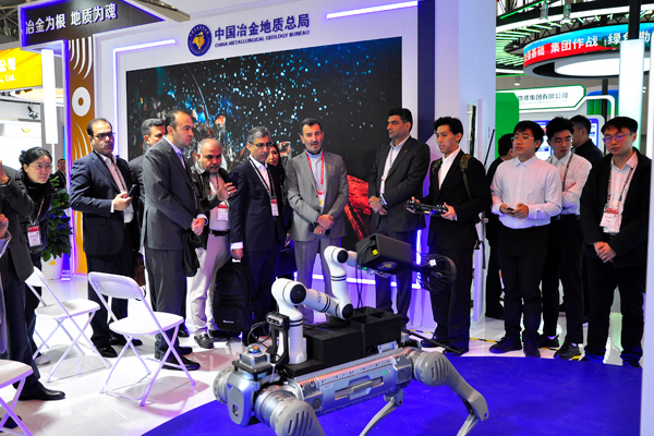 展会上,总局室内特装展台围绕“冶金为根 地质为魂”主题,通过视频、图文、书籍、矿石标本、实物模型等形式,集中展示了总局成立73年来,在地质勘查、科技创新、领军人才培养以及国际合作等方面所取得的成果成就;室外智能装备展区展示了多个地质勘探精密仪器及配套智能装备,引来众多参观者驻足咨询。